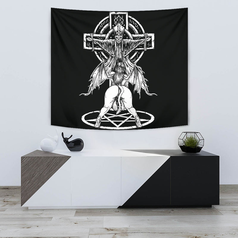 Satanic Pentagram Satanic Cross Demon Erotic Large Wall Decoration Tapestry Black And White
