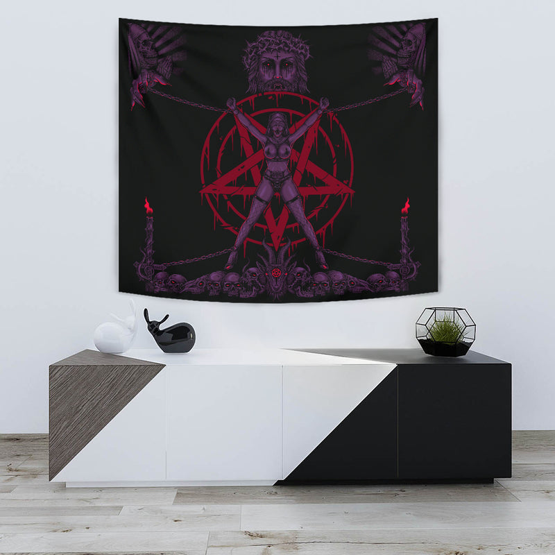 Satanic Pentagram Satanic Cross Demon Erotic Large Wall Decoration Tapestry Wild Sexy Blue Pink