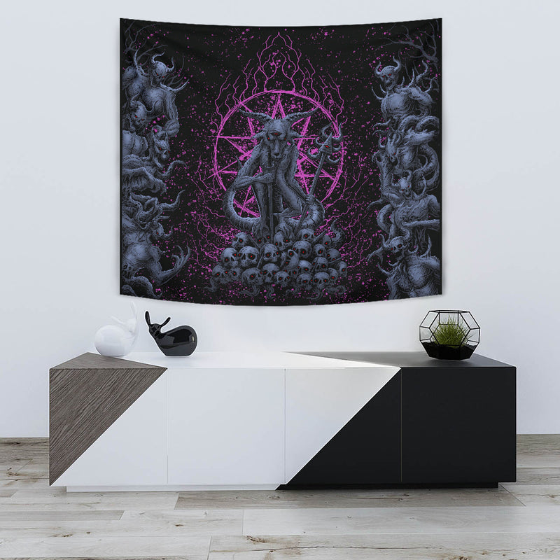 New! Original Skull Satanic Malevolent Cyclops Baphomet Goat Demon Invasion Large Wall Decoration Tapestry Awesome Blue Pink