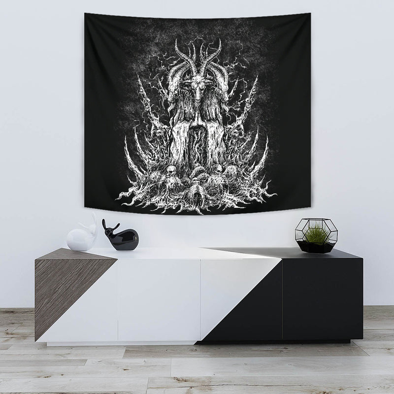 Skull Satanic Goat Huge Wall Tapestry Original Black And White