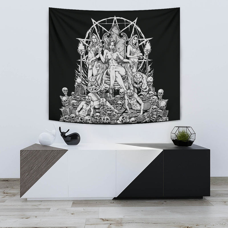 Skull Demon Serpent Flesh Gluttony Throne Large Wall Decoration Tapestry Black And White