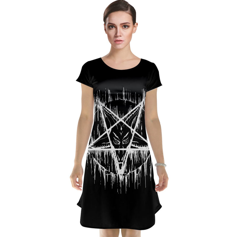 Satanic Pentagram Drip Cap Sleeve Nightdress