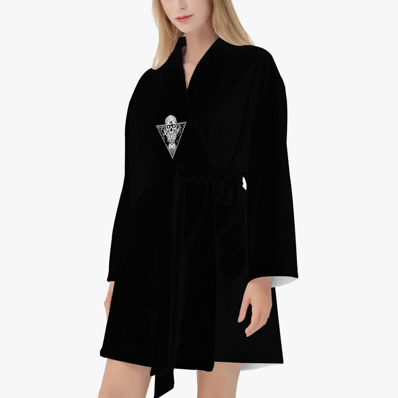 Skull Occult Goth Cat Women's Loose-fitting Bathrobe Black Sleeve Version