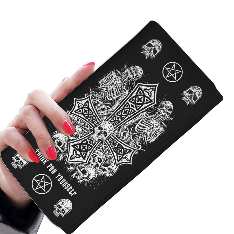 Skull Skeleton Inverted Cross Women's Think For Yourself Unchained And Naughty Wallet