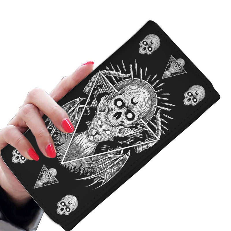 Goth Skull Bat Wing Black Cat Women's Wallet