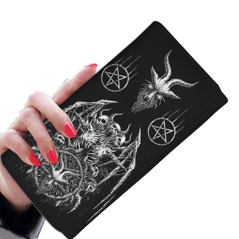 Skull Satanic Bat Wing Demon Goat Satanic Pentagram Serpent Women's Wallet